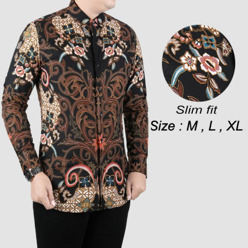 Brown Fashion Kemeja Batik Slim Fit Longsleeve Pria - Kemeja batik modern untuk casual dan formal look - Multiwarna